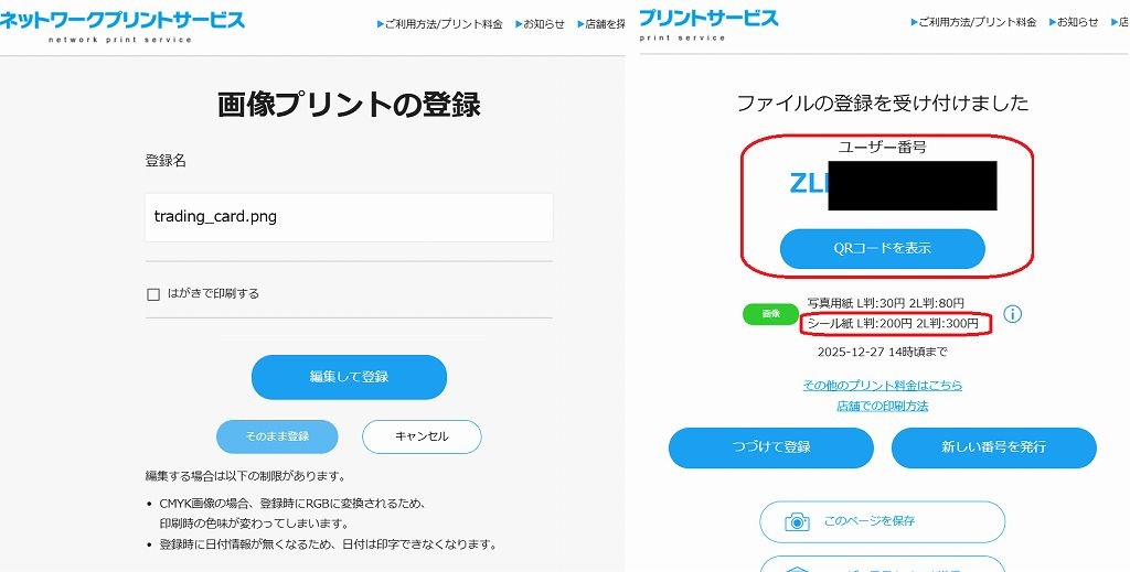 L判サイズの画像ファイルを登録していれば、シール紙での印刷価格も表示されるはずです。