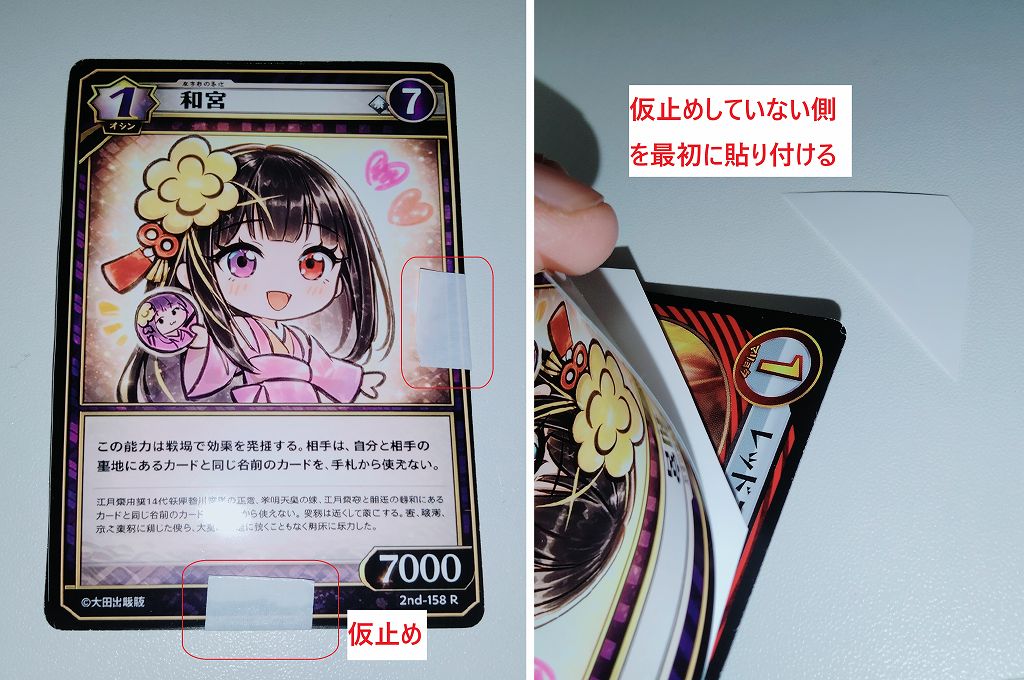 本物のカードに貼り付けているのでペラペラ感もなく、かなりそれっぽいものが出来ます。オリカ作ってみたいという方にはオススメの方法です。