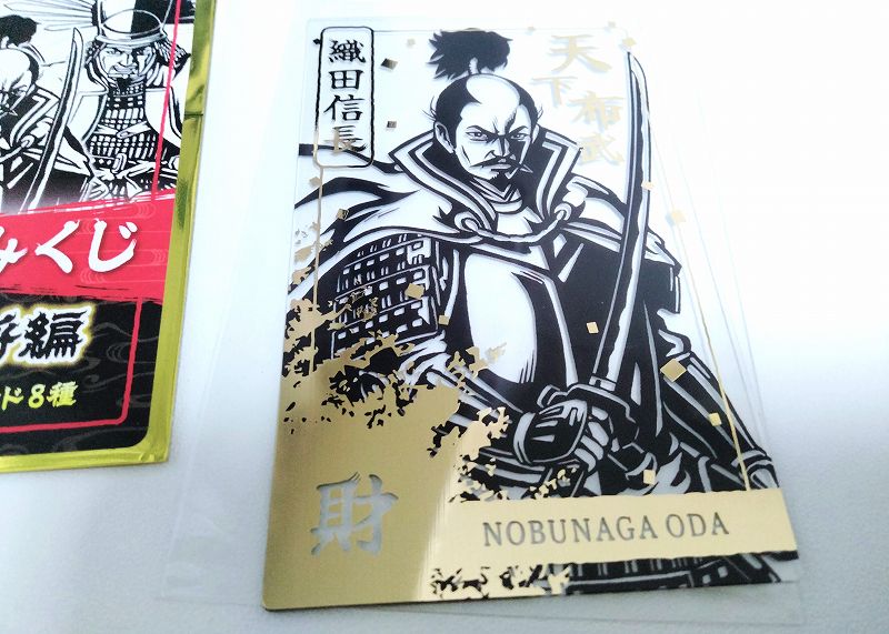 カードにはタイトル通り戦国武将がデザインされていて、透明のクリアカードになっていました。