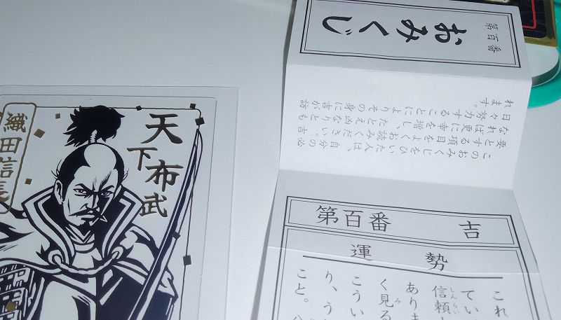 まぁ、おみくじなのですが、普段カードゲームをやっている身としては、中身のカードがすごく気になる。