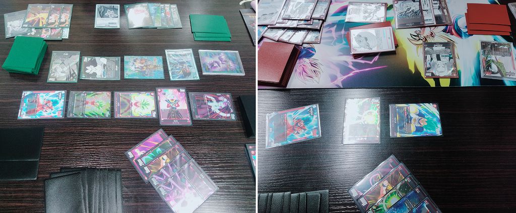 アグロの緑ベジータと、環境デッキともやりたかったので、赤セル、純粋ブウと対戦。