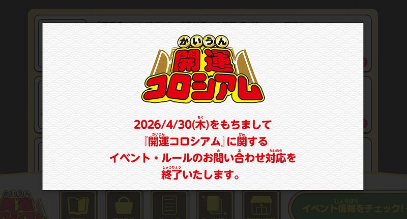 2026年4月30日をもって問い合わせ対応を終了するとのアナウンスが。