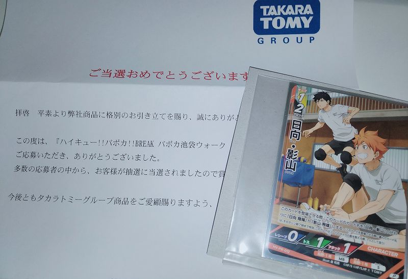 バボカ池袋ウォーク(ハイキューパネル撮影してポストするXのキャンペーン)のプロモカードが当選してました(#^.^#)v