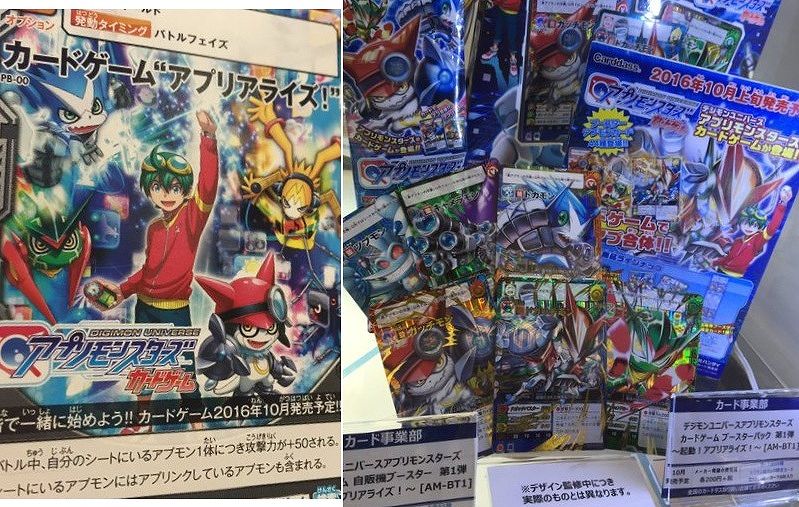 アプカ第1弾となるブースターパック「起動!アプリアライズ!」と、スターターセット「はじめてのアプ合体セット!」が発売開始。自販機ブースター(カードダス)での販売も順次開始された。また、玩具のアプモンチップや、ゲーム機能付きガシャポン販売機「アプモンガチンコビンゴ」も同日に稼働開始となった(2017年11月に稼働終了)。