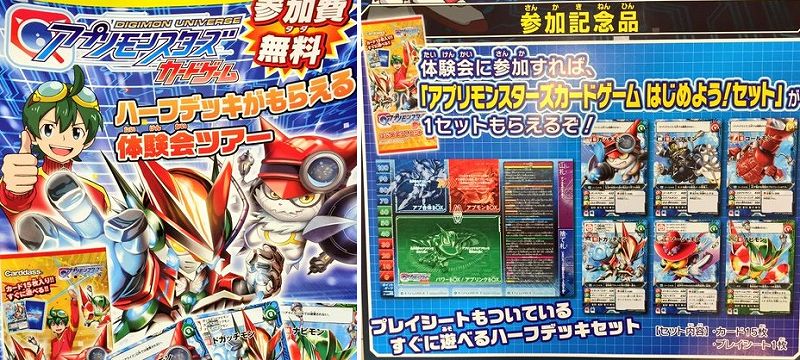 アプカの体験会ツアーが開催スタート。体験会の参加者には「アプリモンスターズカードゲーム はじめよう!セット」が配布された。