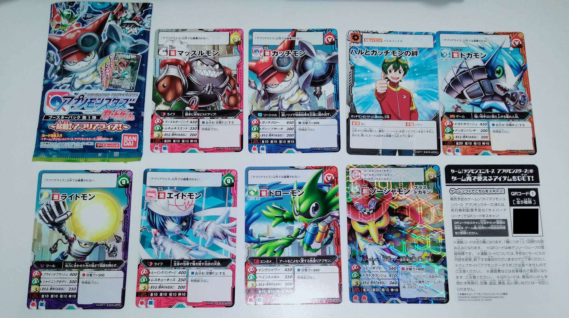1パック8枚入り+ゲーム連動のQRコードが記載された用紙が封入。
