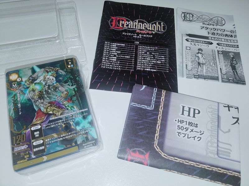 最後に少し暗い話になってしまいましたが、ドレッドノート自体はカードゲームとして結構面白くて、スターターとかも安かったので(私が購入した時点では1つ300円くらいでした)、気になる方は遊んでみてはいかがでしょうか。