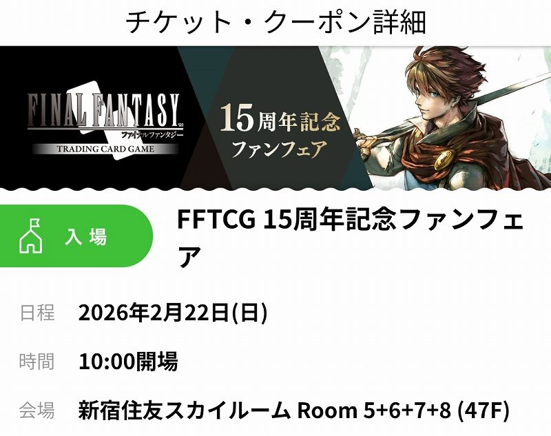 2026年2月22日(日)、新宿で開催された「ファイナルファンタジー・トレーディングカードゲーム」(以降:FFTCG)のイベント「FFTCG 15周年記念ファンフェア」に参加してきました!