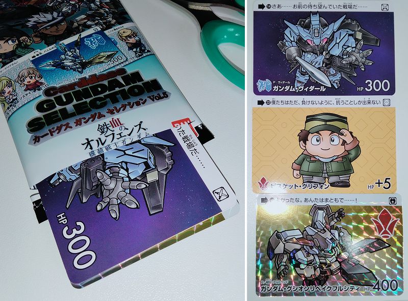 私は子どもの頃、いわゆる「本弾」と呼ばれるガンダムのカードダスを集めており、友達と自分たちでルールを決めながらよく対戦していました。今回購入したカードも本弾と同じ仕様になっているため、当時のように対戦できるはず──そんな思いから手に取りました。
