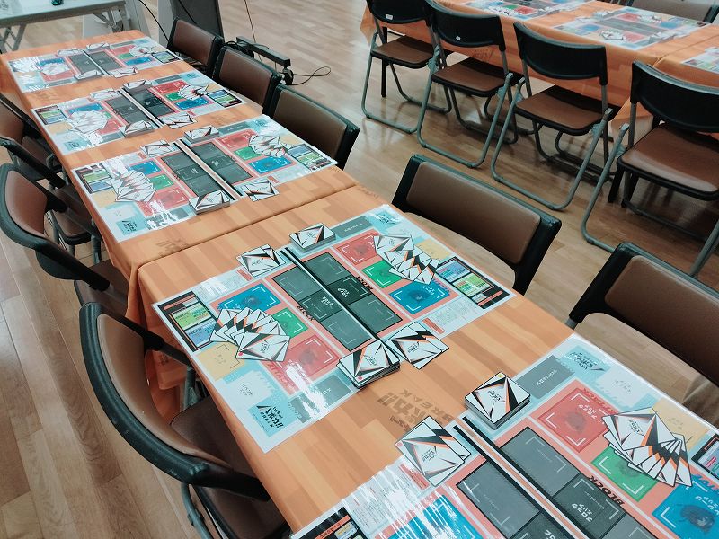 来月発売予定の新しいカードゲームという事で、やはり参加者はそこそこいました(たしか20人くらい)。
