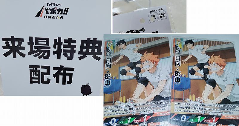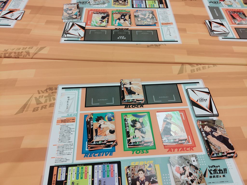 こちらのイベントは貸し出しデッキで対戦するイベントで、最初に烏野デッキか音駒デッキを選択して、そのデッキでスタッフさんがマッチングしてくれた相手と1ゲームすると、参加特典がもらえるというようなイベントでした。