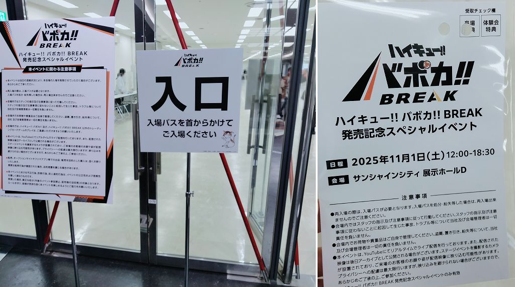 2025年11月1日(土)に東京都池袋にて開催された『ハイキュー!!バボカ!!BREAK』の発売を記念したイベント『発売記念スペシャルイベント』に参加してきましたので、現地のレポートをまとめました。