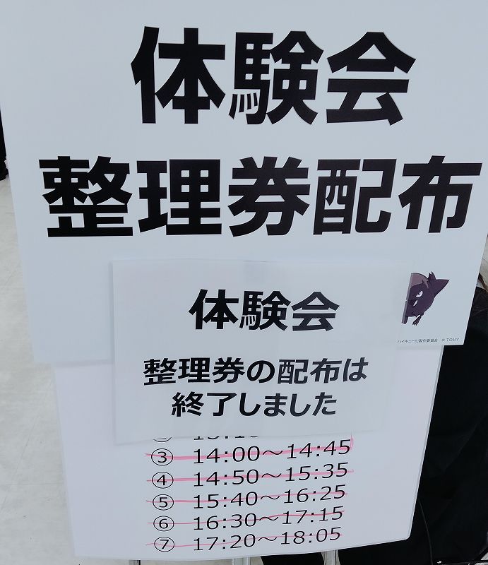 私が会場に着いた時点で、体験会はすでに整理券が配布終了となっていて、