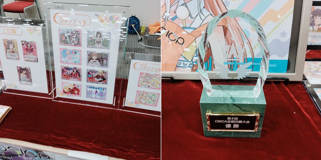 大会プロモや、上位者にあたえられるトロフィーも展示されていました。