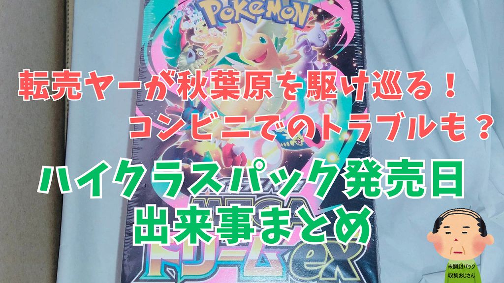 今回もコンビニでの話題が結構多くて、カードショップはほとんど事前抽選なので発売日当日に何か起きるとかは無いんですが、コンビニは当日の先着販売なので、ポケカを求めてすごく多くの人が集まっていたようです。