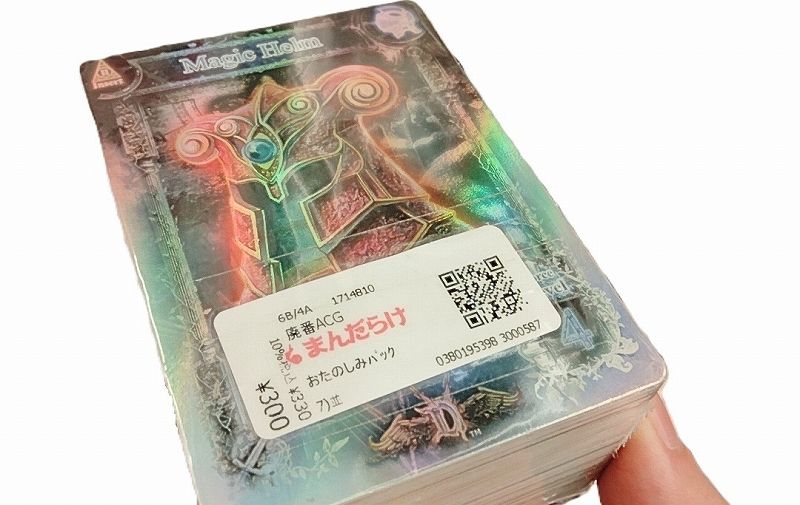 アーケード用のカードって、TCGのスタンダードサイズより一回り小さいものがほとんどなのですが、入っているカードは全てスタンダードサイズ(クエD)っぽい。