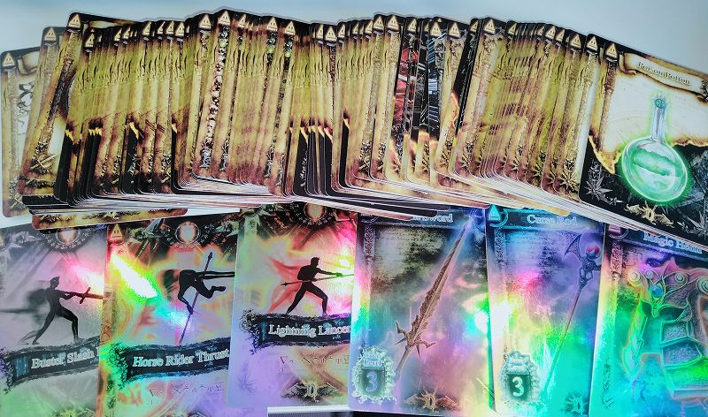 これら「ハイポーション」や「肉(鶏肉)」などは、誰でも使える回復手段なので、汎用性が高い必須カードとなっていて、結構高額で取引されていたこともあります。