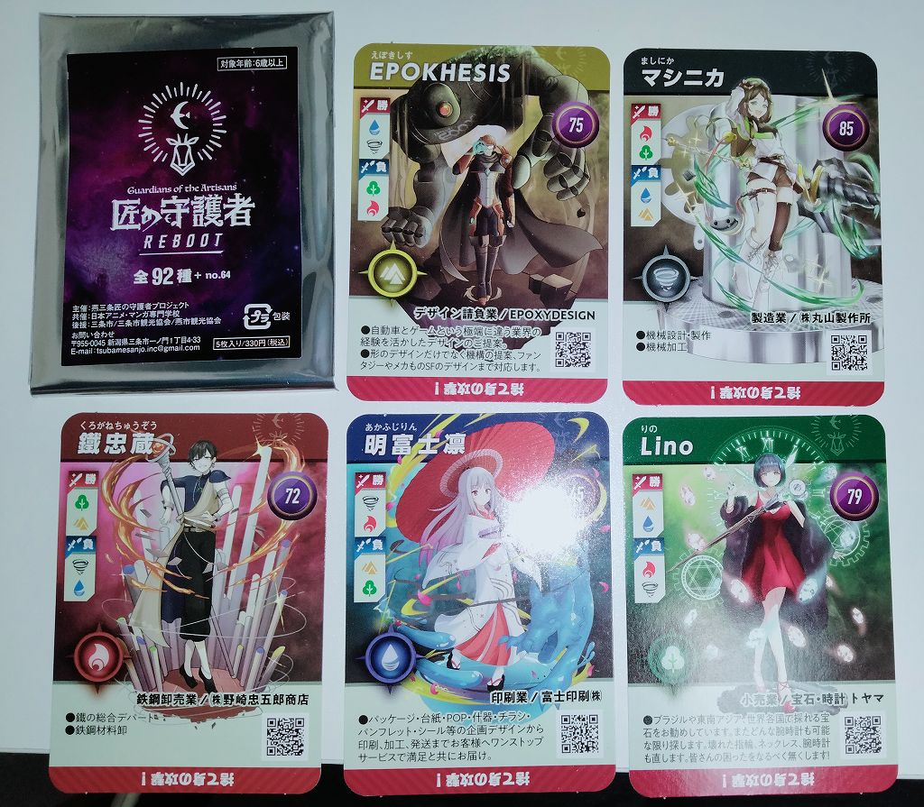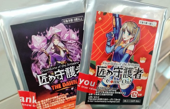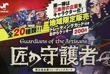 『燕三条企業トレーディングカード 匠の守護者 -Guardians of the Artisans-』とは、新潟県 燕三条(つばめさんじょう)エリアの産業観光PRと、地域の子供達に地場産業を学んでもらうために作成されたトレーディングカードゲーム。